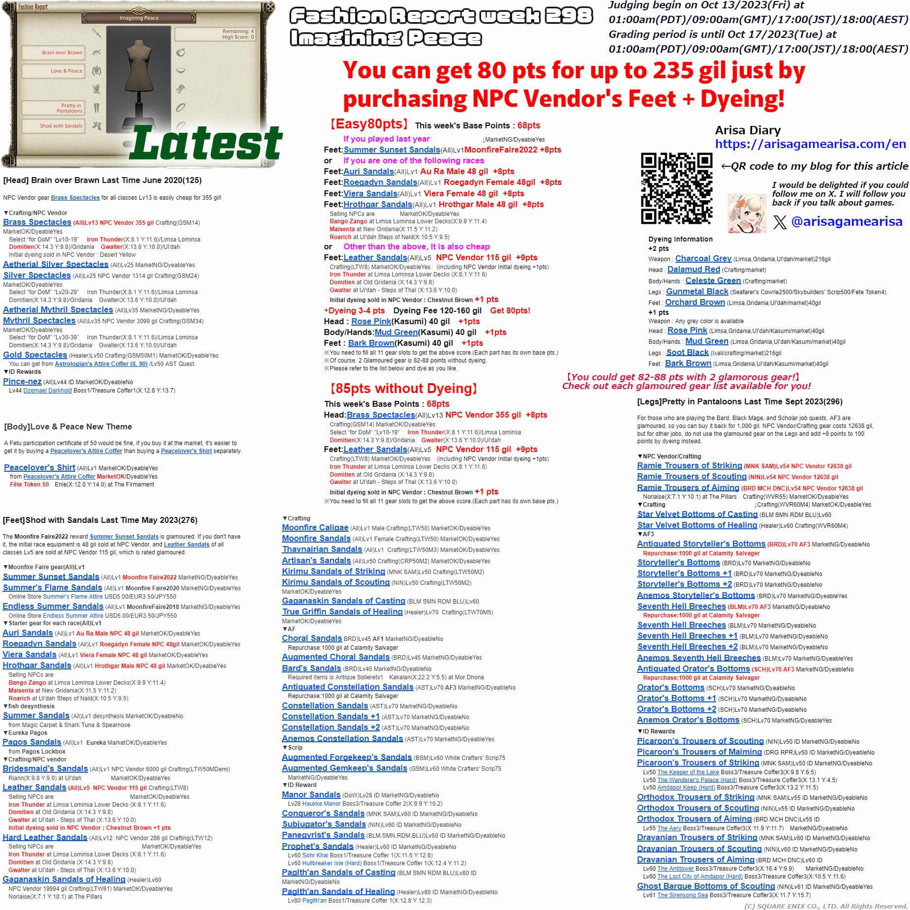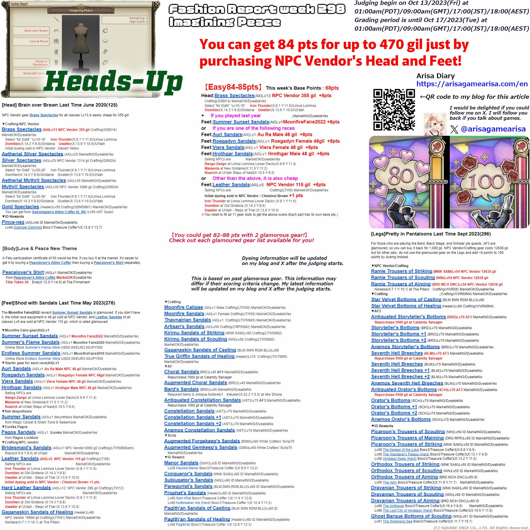Fashion Report Week 298 Guide – Final Fantasy XIV – Easy 80 points / 100 points : Imagining Peace : Arisa Dialy